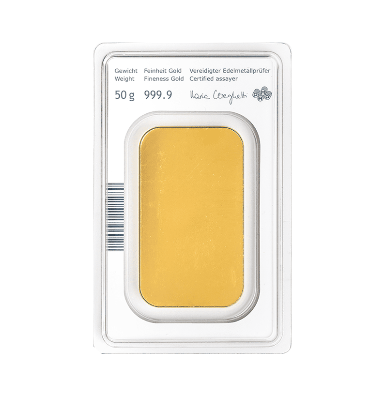 Zlata palica Münze Österreich 50g je odlična izbira za vlagatelje, ki želijo povečati svojo naložbo v zlato z enim kosom višje vrednosti. Primerna je tako za posameznike, ki redno vlagajo večje zneske, kot tudi za tiste, ki želijo svojo zlato rezervo razdeliti na več enot za lažje upravljanje in večjo prilagodljivost pri morebitni prodaji.
